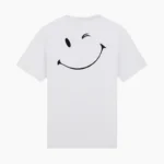 Sorria com estilo! Esta t-shirt branca super confortável é perfeita para quem adora um toque divertido no look. Com um design minimalista, a estampa de um rosto sorridente e piscando nas costas adiciona um charme extra ao seu visual.