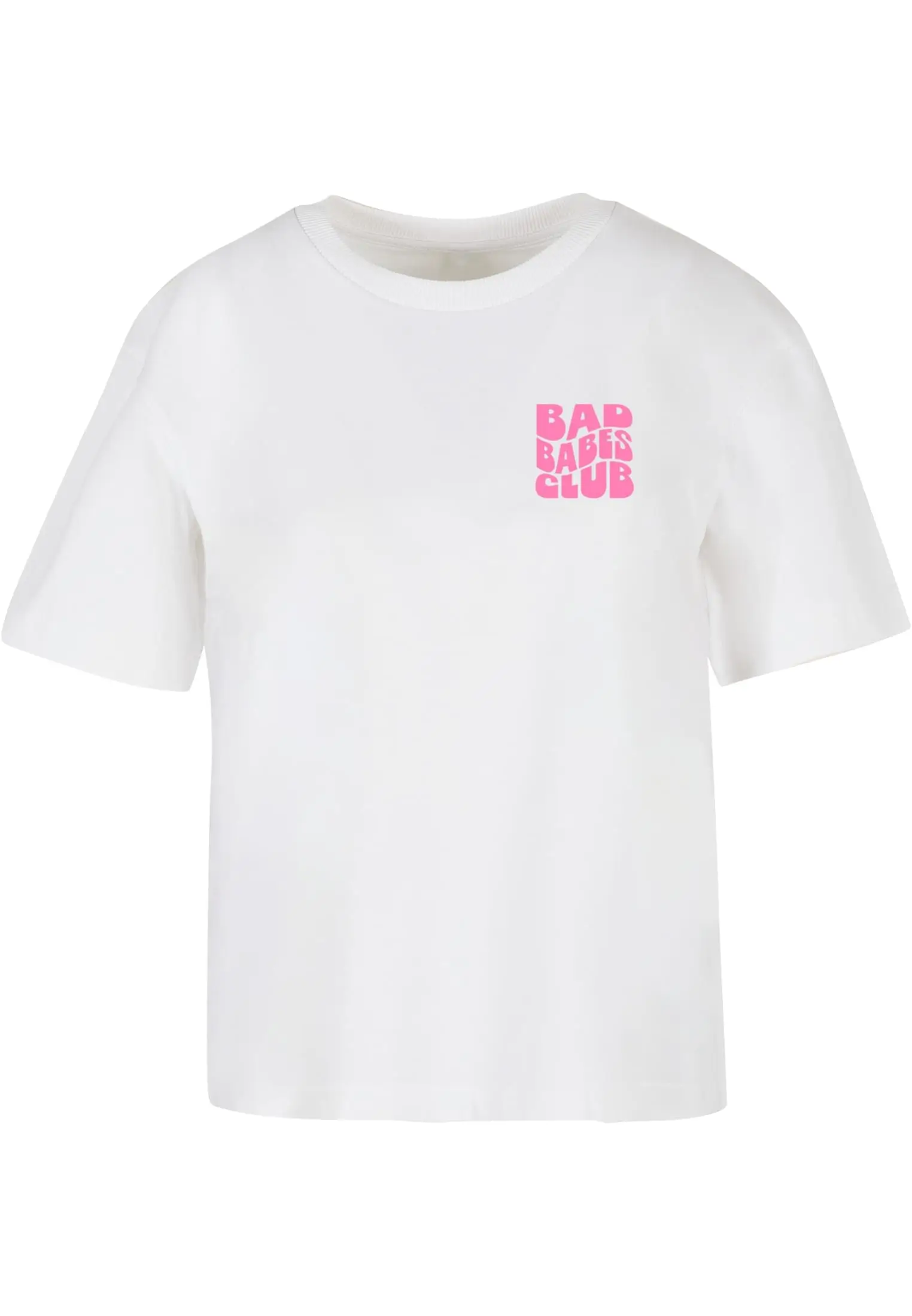 Eleva o teu streetwear com a nossa T-shirt Bad Babes Club. Esta peça essencial combina o conforto imbatível do algodão com um design gráfico que é pura tendência. Na frente, um detalhe minimalista com o logótipo em tom rosa vibrante; nas costas, a afirmação máxima: o nome do clube em letras de efeito 3D “bubble” e bolhas translúcidas que dão profundidade e uma vibe ultra moderna ao teu outfit.