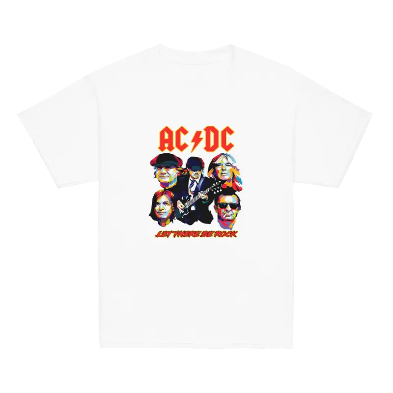 Design Exclusivo: Estampa colorida de alta qualidade com os membros do AC/DC e o logótipo clássico com o raio.