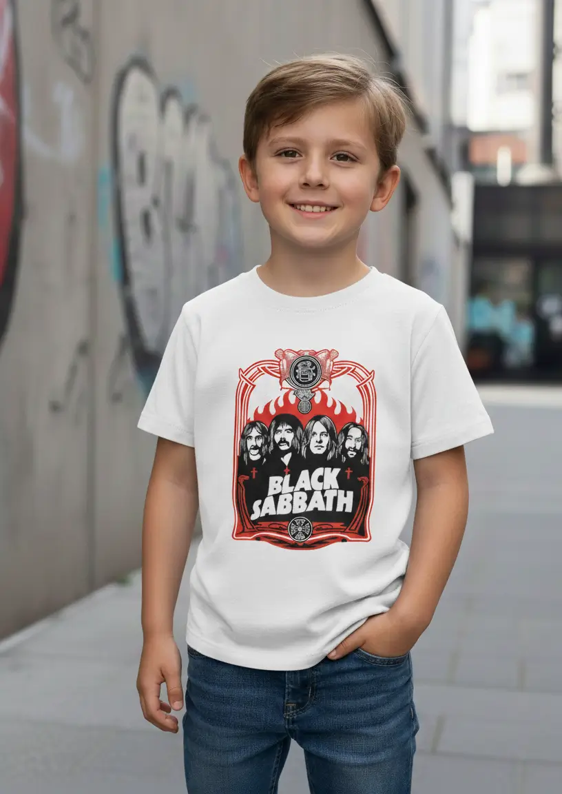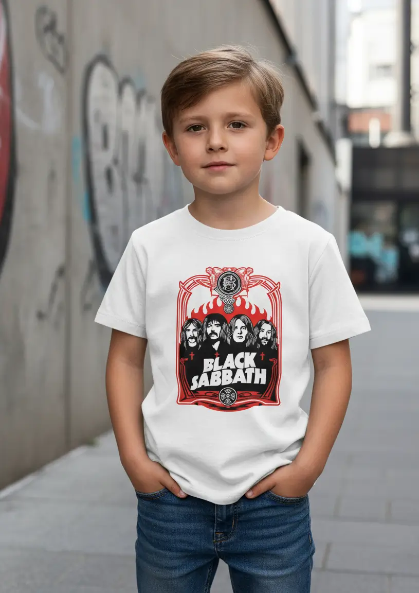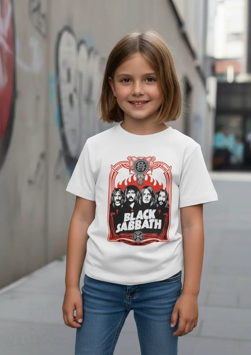 Introduz o teu filho ao universo das lendas da música com esta T-shirt do Black Sabbath. Com um design artístico de alto contraste em preto e vermelho, esta peça é a escolha ideal para crianças com atitude e pais que não dispensam o bom e velho Heavy Metal no guarda-roupa da família.