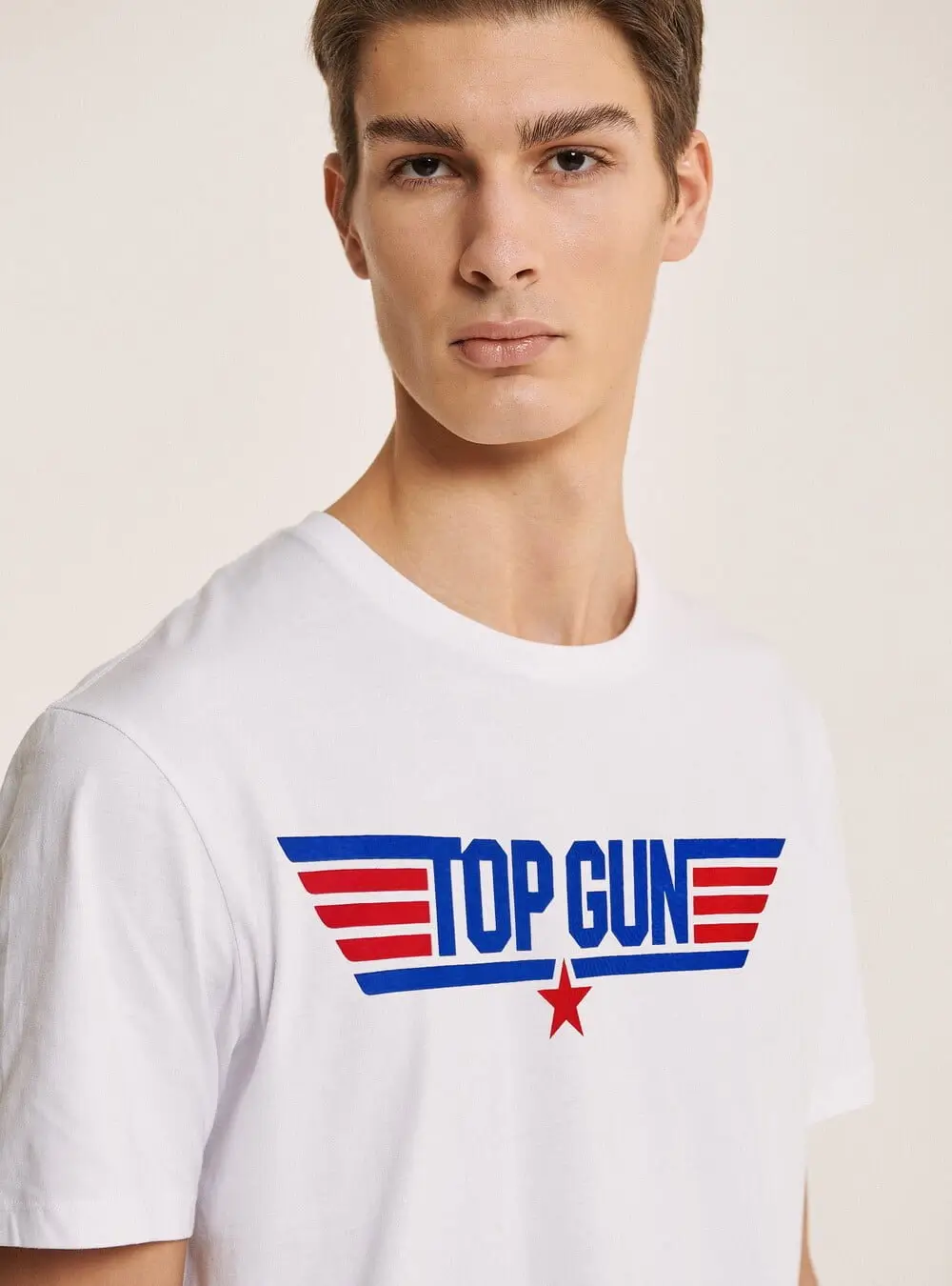 Voe alto com esta camiseta branca clássica do Top Gun! Perfeita para os fãs do filme, a camiseta traz o logo icônico em destaque, com as cores e o design que marcaram uma geração. Feita com um tecido macio e confortável, ela é ideal para qualquer momento, mostrando seu estilo e sua paixão por este sucesso de bilheteria.